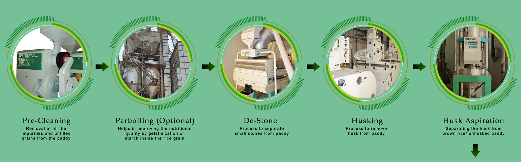 The exposure of paddy to gradual drying processes and controlled temperatures reduce the unneeded moisture prevalent in the paddy. For ensuring the drying of the paddy Rice appropriately, our drying plant comprises of fully mechanized and automatic gradual drying systems having on line sensors for controlling the temperatures. These can dry 100 tons of Paddy per day. We ensure taking appropriate care so that none of the delicate portion of the Rice breaks while processing. Our technological solutions make us take every measure for avoiding Bacterial infection, fermentation or fungal infection so that we keep the hygiene and the natural aroma intact.