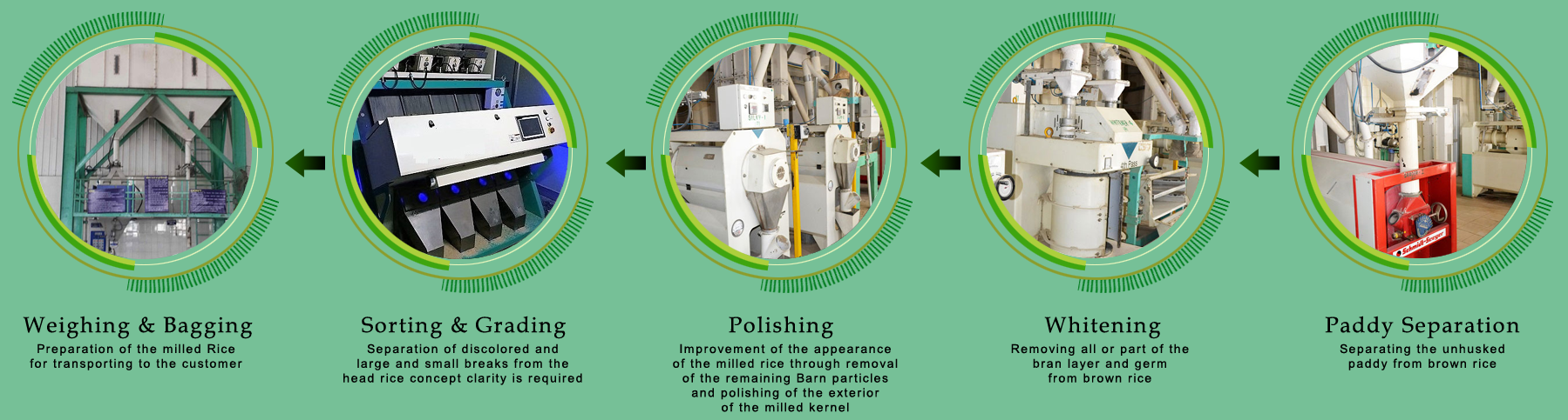 Rice in its natural form is inedible. Therefore, milling and processing of the Rice is required for attaining the desired quality of Rice. In our Rice mills, we process the Rice for making it polished and edible. The main goal of milling is the removal of Barns and Hulls from the Rice so that its consumption becomes possible. Rice is the basic primary product obtained from Paddy after Paddy is processed. This Rice is reprocessed for obtaining varied secondary and tertiary products. Here are some of the operations done to create the final product.